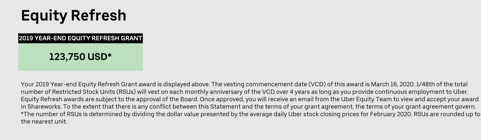 While I was at Uber, both myself and most people I knew received equity top-ups every year. This is not the norm for all companies, though: I know several places that either do not have this in place or only the top 20% might receive any form of additional equity.